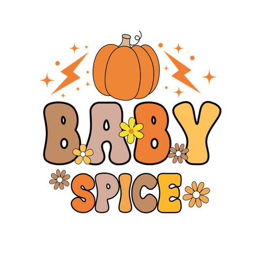 Lindo y caprichoso diseño "Baby Spice" con una calabaza, flores y un texto divertido, ¡perfecto para las vibraciones otoñales!