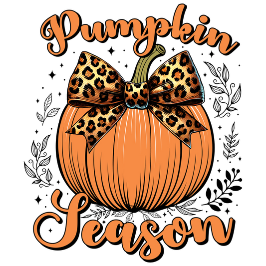 Abraza el otoño con esta elegante ilustración de calabaza que presenta un lazo con estampado de leopardo y la frase "Temporada de calabazas".