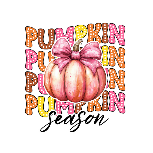 ¡Celebre el otoño con una divertida calabaza rosa adornada con un lazo, resaltando el divertido tema de la "Temporada de calabazas"!