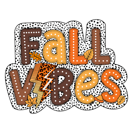Un gráfico "Fall Vibes" vibrante y divertido con hojas otoñales y un rayo, ¡perfecto para celebrar la temporada!