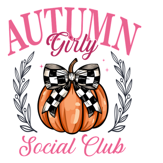 Celebre la temporada con este diseño caprichoso que presenta una calabaza adornada con un lazo a cuadros blancos y negros, ¡perfecto para los entusiastas del otoño!