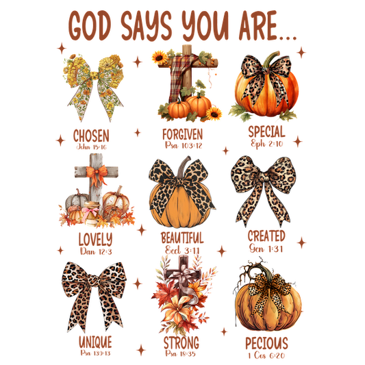Una impresión vibrante con temática otoñal que presenta mensajes alentadores con calabazas, moños y cruces, que celebran la positividad y la individualidad.