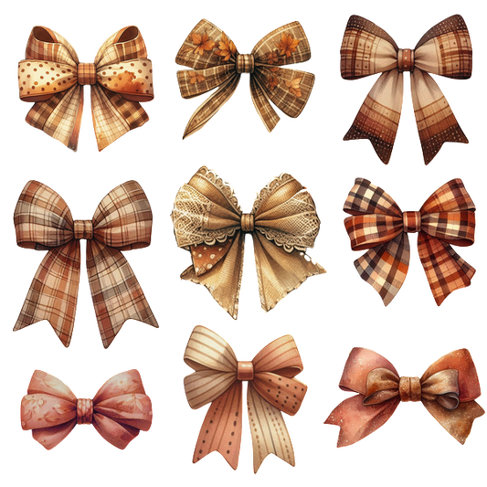 Una colección de nueve lazos decorativos con diversos patrones y texturas, que muestran tonos cálidos y terrosos y diseños intrincados.