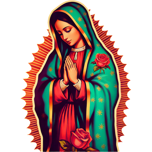 Precio habitual A partir de £0.75 GBPPrecio habitualPrecio unitario / por£2.39 GBPPrecio de oferta A partir de £0.75 GBPUna ilustración vibrante de una figura orante adornada con un manto verde azulado con rosas, que irradia serenidad y devoción.