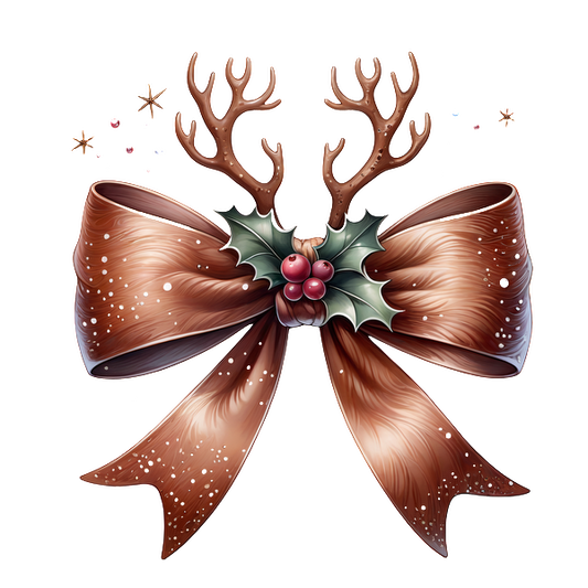 Una cinta marrón festiva adornada con astas, hojas de acebo y bayas, perfecta para decoraciones navideñas.