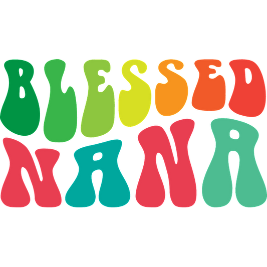 Diseño de texto colorido y divertido que dice "BLESSED NANA", perfecto para celebrar a una abuela querida.