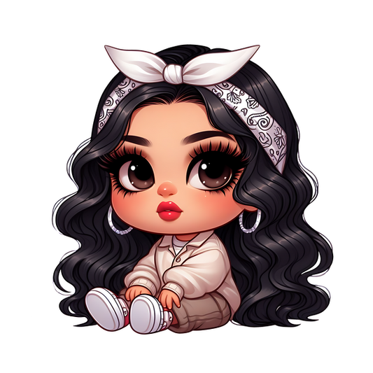 Precio habitual A partir de £0.75 GBPPrecio habitualPrecio unitario / por£2.39 GBPPrecio de oferta A partir de £0.75 GBPUn adorable personaje de dibujos animados con cabello negro largo y rizado, que viste una diadema blanca, una camisa de gran tamaño y lindas zapatillas deportivas.