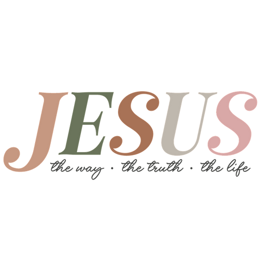 A vibrant typographic design featuring the word "JESUS" with a slogan that reads "the way · the truth · the life."DTF Transfers