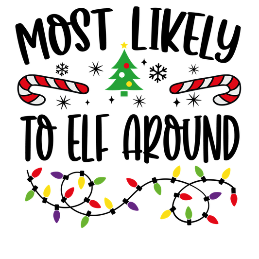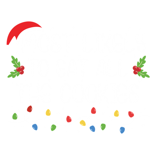 Celebrate the holiday spirit with this fun graphic reading "Most Likely to Eat All the Cookies," accented by festive elements.DTF Transfersdtf regular irondtf regular iron