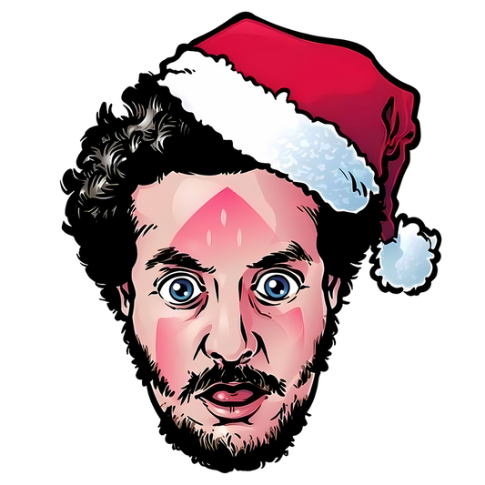 A festive character wearing a classic red Santa hat, radiating holiday cheer with curly hair peeking out.DTF Transfers heat press transfersdtf regular iron