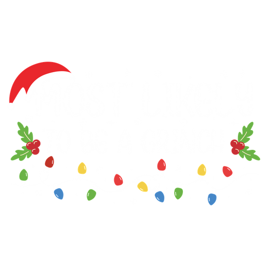 This festive design features the phrase "Most Likely to Be a Grinch," adorned with colorful Christmas lights and holiday greenery.DTF Transfers dtf transfers