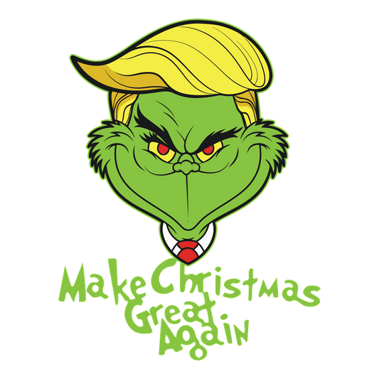 A humorous design featuring a cartoon Grinch with a blonde hairstyle and the phrase "Make Christmas Great Again" in vibrant colors.DTF Transfersdtf regular iron dtf prints