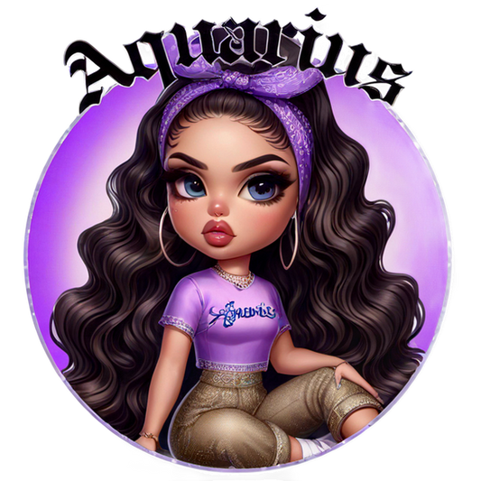 Precio habitual A partir de £0.75 GBPPrecio habitualPrecio unitario / por£2.39 GBPPrecio de oferta A partir de £0.75 GBPUn elegante personaje de Acuario con cabello rizado, que viste una camiseta corta violeta y pantalones dorados, irradia energía vibrante.