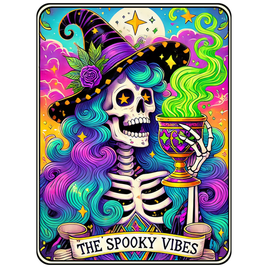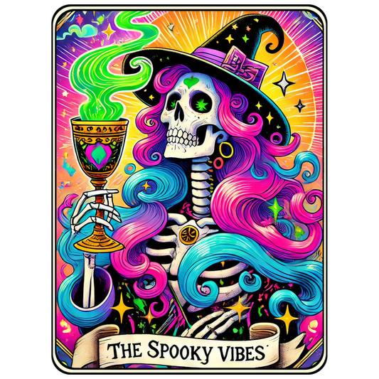 Precio habitual A partir de £0.75 GBPPrecio habitualPrecio unitario / por£2.39 GBPPrecio de oferta A partir de £0.75 GBPUna ilustración vibrante de una bruja esqueleto con cabello colorido, sosteniendo una copa mágica y rodeada de humo verde arremolinado.