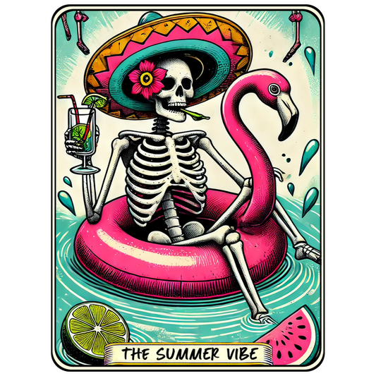 Precio habitual A partir de £0.75 GBPPrecio habitualPrecio unitario / por£2.39 GBPPrecio de oferta A partir de £0.75 GBPUn esqueleto juguetón con sombrero descansa sobre una carroza de flamenco rosa, bebiendo una bebida, encarnando la vibra veraniega perfecta.