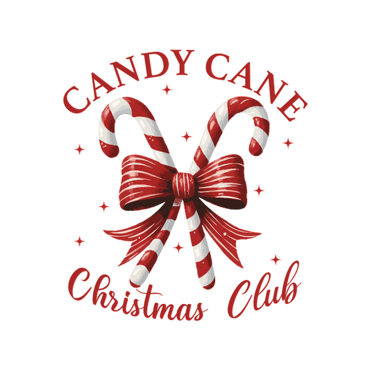 Un diseño festivo que presenta bastones de caramelo atados con un lazo, acompañados del texto "Candy Cane Christmas Club".