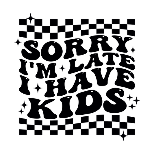 Un diseño gráfico divertido que presenta el texto "Lo siento, me temo que tengo hijos", perfecto para padres con sentido del humor.