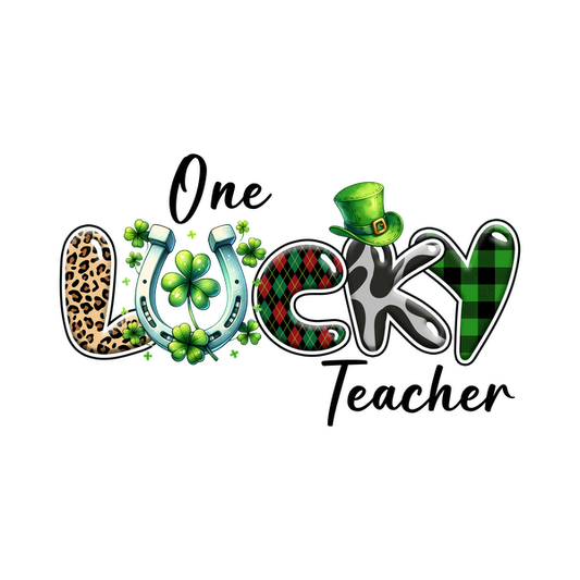 Diseño "LUCKY" brillante y divertido con estampado de leopardo, tréboles y un sombrero de duende verde, ¡perfecto para el Día de San Patricio!