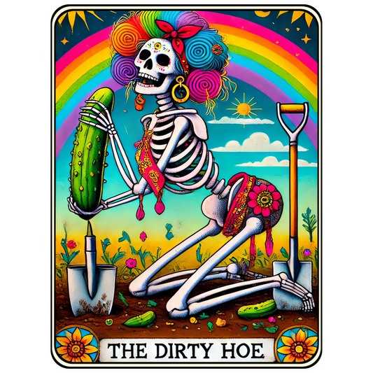 Precio habitual A partir de £0.75 GBPPrecio habitualPrecio unitario / por£2.39 GBPPrecio de oferta A partir de £0.75 GBPUna obra de arte vibrante y divertida que presenta un colorido jardinero esqueleto sosteniendo juguetonamente un pepino, con un fondo de arcoíris.