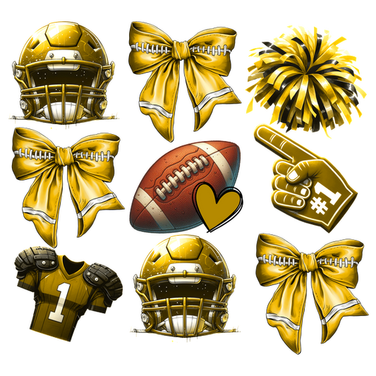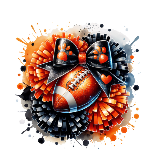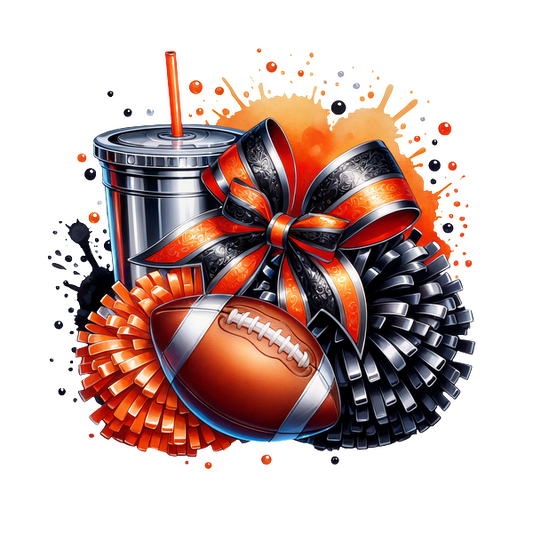 A vibrant design featuring a football, pom-poms, a festive bow, and a drink, perfect for game day celebrations!DTF Transfers dtf prints