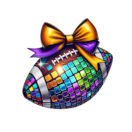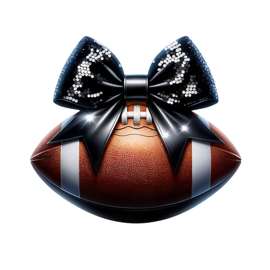 An artistic blend of a football adorned with a shiny black bow, adding a playful and stylish touch to the sport.DTF Transfersdtf regular iron