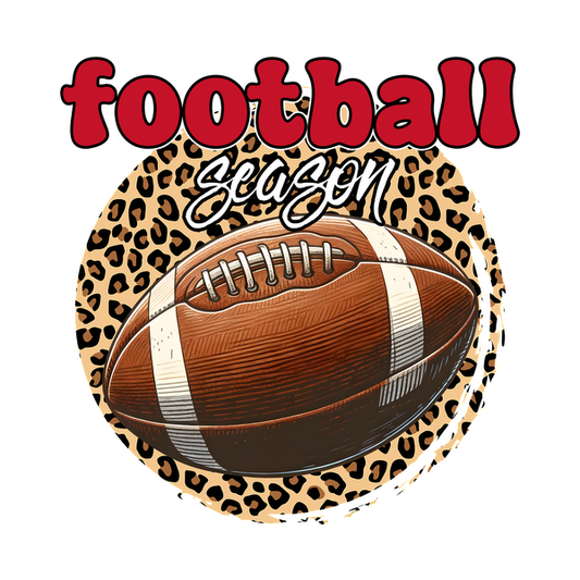 Gráfico elegante que presenta un balón de fútbol y el texto "Temporada de fútbol" sobre un fondo con estampado de leopardo, perfecto para los entusiastas de los deportes.