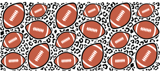 Un patrón divertido de balones de fútbol marrones con cordones blancos, perfecto para diseños o decoraciones con temática deportiva. Transferencias UV