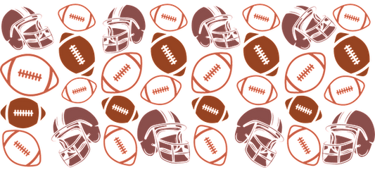 Un patrón divertido con balones de fútbol y cascos, perfecto para los amantes de los deportes y excelente para decoraciones o prendas temáticas. Transferencias UV