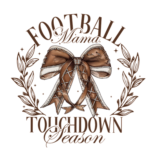 ¡Celebre la temporada de fútbol con este elegante gráfico que presenta un lazo y detalles de hojas, perfecto tanto para fanáticos como para mamás!