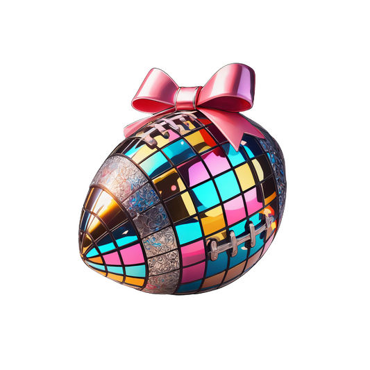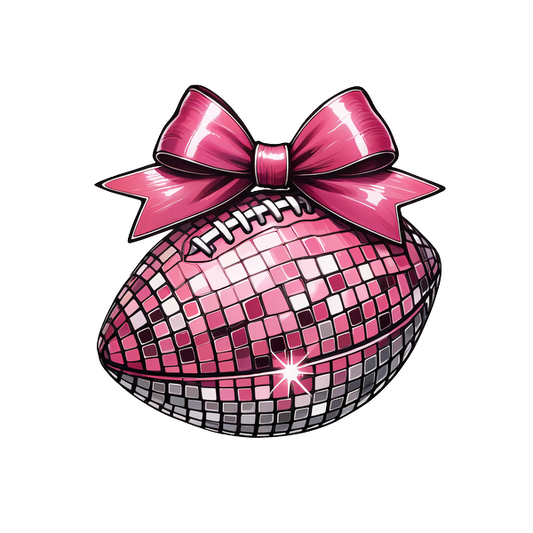 Una divertida bola de discoteca de color rosa adornada con un lazo brillante, perfecta para darle un toque divertido a tu equipamiento deportivo.