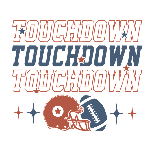 ¡Celebre el fútbol con este vibrante gráfico "Touchdown" que presenta texto en negrita y un diseño de casco clásico!