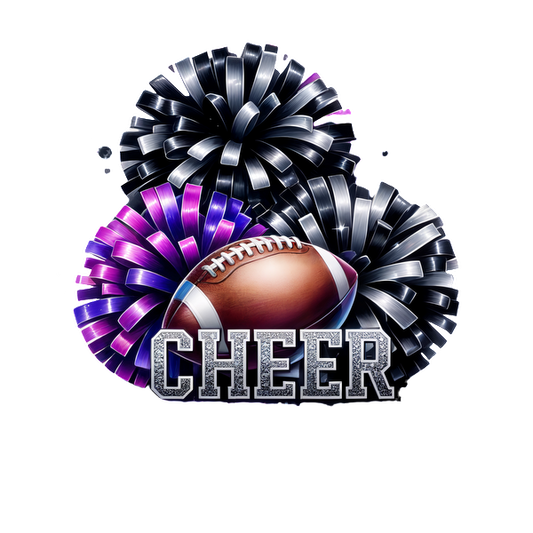 Un gráfico vibrante que presenta una pelota de fútbol y pompones de animadoras de colores, que captura el espíritu de las animadoras y la emoción deportiva. Transferencias DTF
