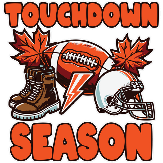 Precio habitual A partir de £0.75 GBPPrecio habitualPrecio unitario / por£2.40 GBPPrecio de oferta A partir de £0.75 GBP¡Celebre el fútbol con este vibrante gráfico "Touchdown" que presenta texto en negrita y un diseño de casco clásico!