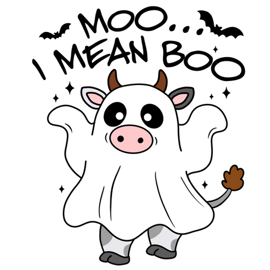 Precio habitual A partir de £0.75 GBPPrecio habitualPrecio unitario / por£2.41 GBPPrecio de oferta A partir de £0.75 GBPUna caricatura caprichosa de una vaca vestida de fantasma, con rasgos divertidos y una expresión amistosa.