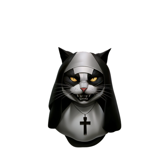 Precio habitual A partir de £0.75 GBPPrecio habitualPrecio unitario / por£2.41 GBPPrecio de oferta A partir de £0.75 GBPUn siniestro personaje felino vestido de monja, con una combinación de colores blanco y negro y llamativos ojos amarillos.
