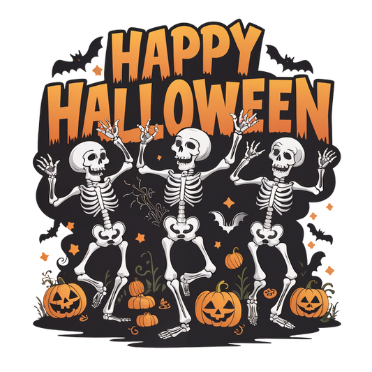 Precio habitual A partir de £0.75 GBPPrecio habitualPrecio unitario / por£2.40 GBPPrecio de oferta A partir de £0.75 GBP¡Celebre Halloween con este gráfico animado que presenta esqueletos danzantes, calabazas vibrantes y un texto llamativo que dice "Feliz Halloween"!