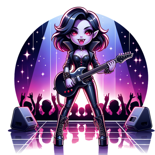 Precio habitual A partir de £0.75 GBPPrecio habitualPrecio unitario / por£2.40 GBPPrecio de oferta A partir de £0.75 GBPUn vibrante personaje de dibujos animados con un elegante traje negro toca la guitarra en el escenario, cautivando a una multitud que lo anima con su onda rockera.