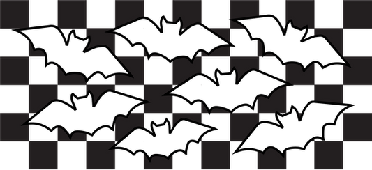 Un diseño gráfico estilizado de un murciélago, ideal para temas de Halloween o decoraciones espeluznantes. Transferencias UV