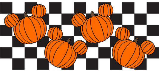 A playful illustration featuring orange pumpkins with a charming design, perfect for autumn-themed decorations.UV Transfers heat press transfers