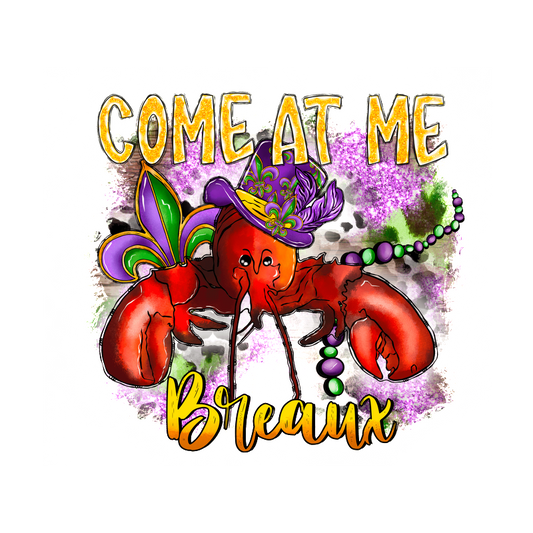 This vibrant graphic features a festive lobster wearing a colorful Mardi Gras hat, accompanied by decorative beads and playful text.DTF Transfers