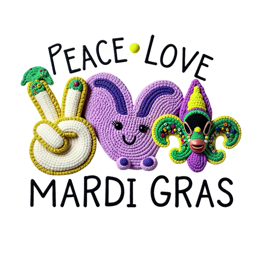《3D chenille-like》Spread the love with cute embroidered Peace, Love, and Mardi Gras designs.DTF Transfers