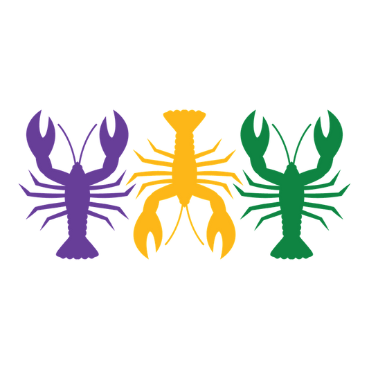 A vibrant graphic featuring three lobsters in purple, yellow, and green colors, perfect for festive occasions or seafood themes.DTF Transfers