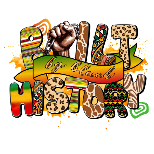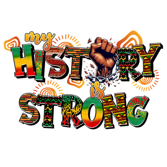 Celebre la rica herencia de la historia negra con este diseño vibrante que presenta colores poderosos y temas de resiliencia y unidad.