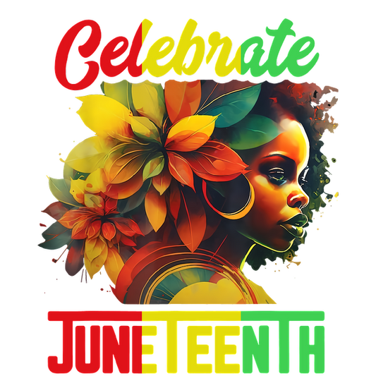 Celebre el Juneteenth con este vibrante diseño gráfico, que presenta a una mujer poderosa y un mensaje audaz de libertad e identidad.