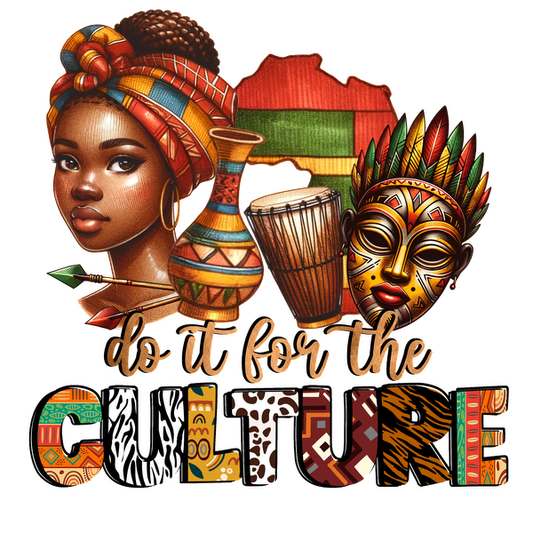 Celebre la fuerza y la cultura con esta vibrante obra de arte que presenta a una orgullosa mujer negra, adornada con un colorido atuendo de inspiración africana.