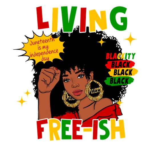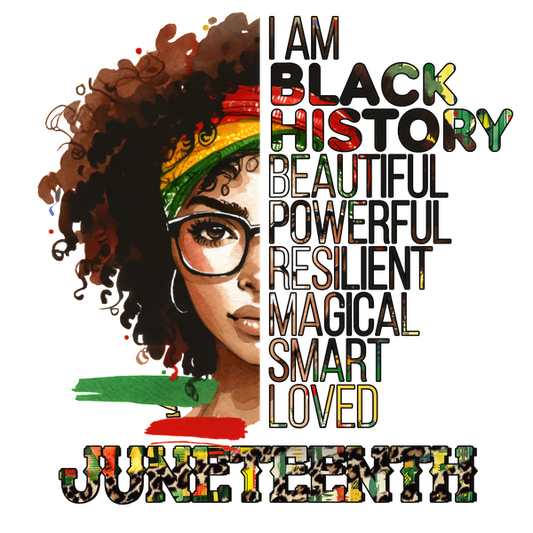 Para celebrar el 19 de junio, este diseño vibrante presenta un puño levantado en rojo, verde y amarillo, que simboliza fuerza y libertad.