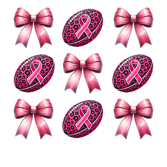 Un patrón alegre con lazos rosas y huevos con estampado de leopardo adornados con cintas rosas para celebrar la concientización sobre el cáncer de mama.