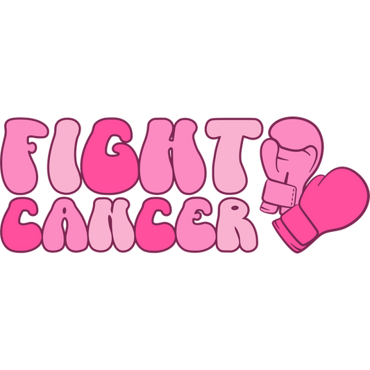Un gráfico llamativo y vibrante dice "Lucha contra el cáncer" en letras rosas, con guantes de boxeo para simbolizar el apoyo y la resiliencia.