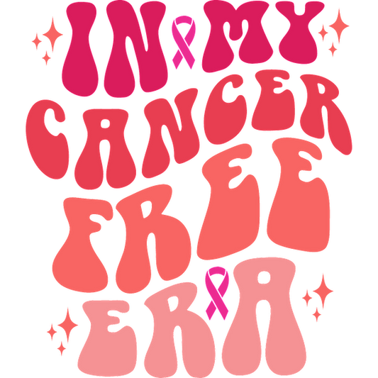 Celebre su victoria con este gráfico vibrante "En mi era libre de cáncer", que muestra letras llamativas y coloridas y un símbolo de cinta rosa.