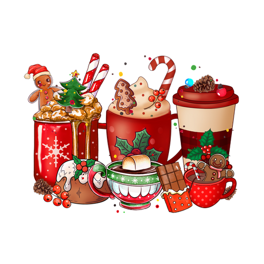 ¡Celebre el espíritu navideño con una deliciosa variedad de bebidas festivas, galletas y decoraciones en rojo y verde vibrantes!
